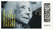 Mit einer Sondermarke (95 ct) ehrt die Deutsche Post die im Mai 2025 verstorbene Holocaust-Überlebende und Zeitzeugin Margot Friedländer. Die gebürtige Berlinerin und Ehrenbürgerin der Stadt engagierte sich unermüdlich für Erinnerung, Toleranz und Menschlichkeit. Ihre Botschaft an die junge Generation – «Ihr seid nicht verantwortlich für das, was geschehen ist. Aber dafür, dass es nie wieder geschieht.» – bleibt ihr Vermächtnis.