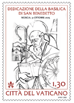 Il 31 ottobre è stato emesso un francobollo per sottolineare la sua riapertura e nuova dedicazione della Basilica di San Benedetto a Norcia dopo i lavori di restauro, resisi necessari a seguito del terremoto del 2016, che aveva gravemente danneggiato l’edificio. Il valora da € 1.30, riproduce la figura di San Benedetto attorniata da alcuni particolari architettonici della Basilica. Una prima versione del programma 2026 annuncia quattordici emissioni.